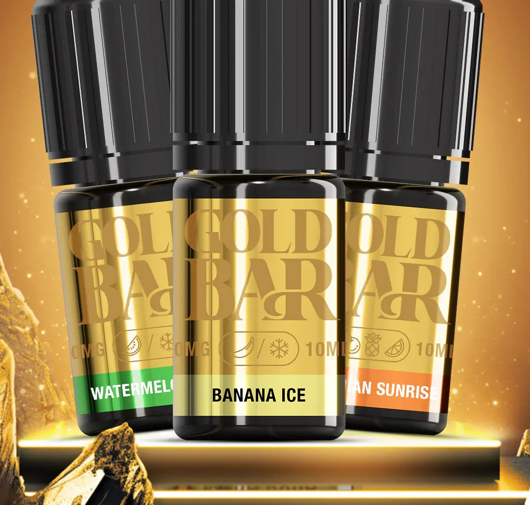 GOLD BAR NIC SALTS AVAILABLE IN 10mg and 20mg 10 FLAVOURS